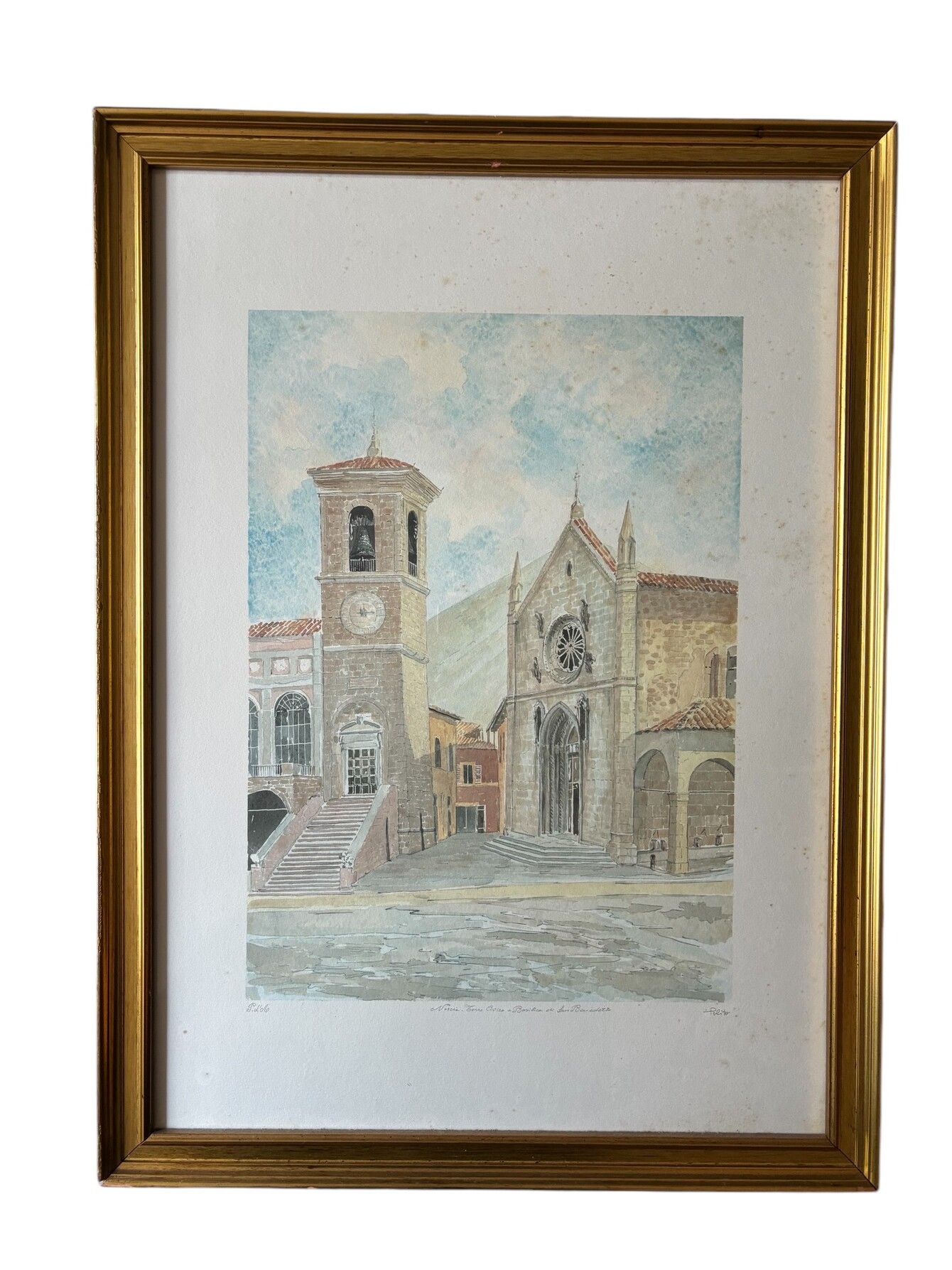 Norcia Torre Civica e Basilica di San Benedetto litografia con cornice 76 x 56 cm