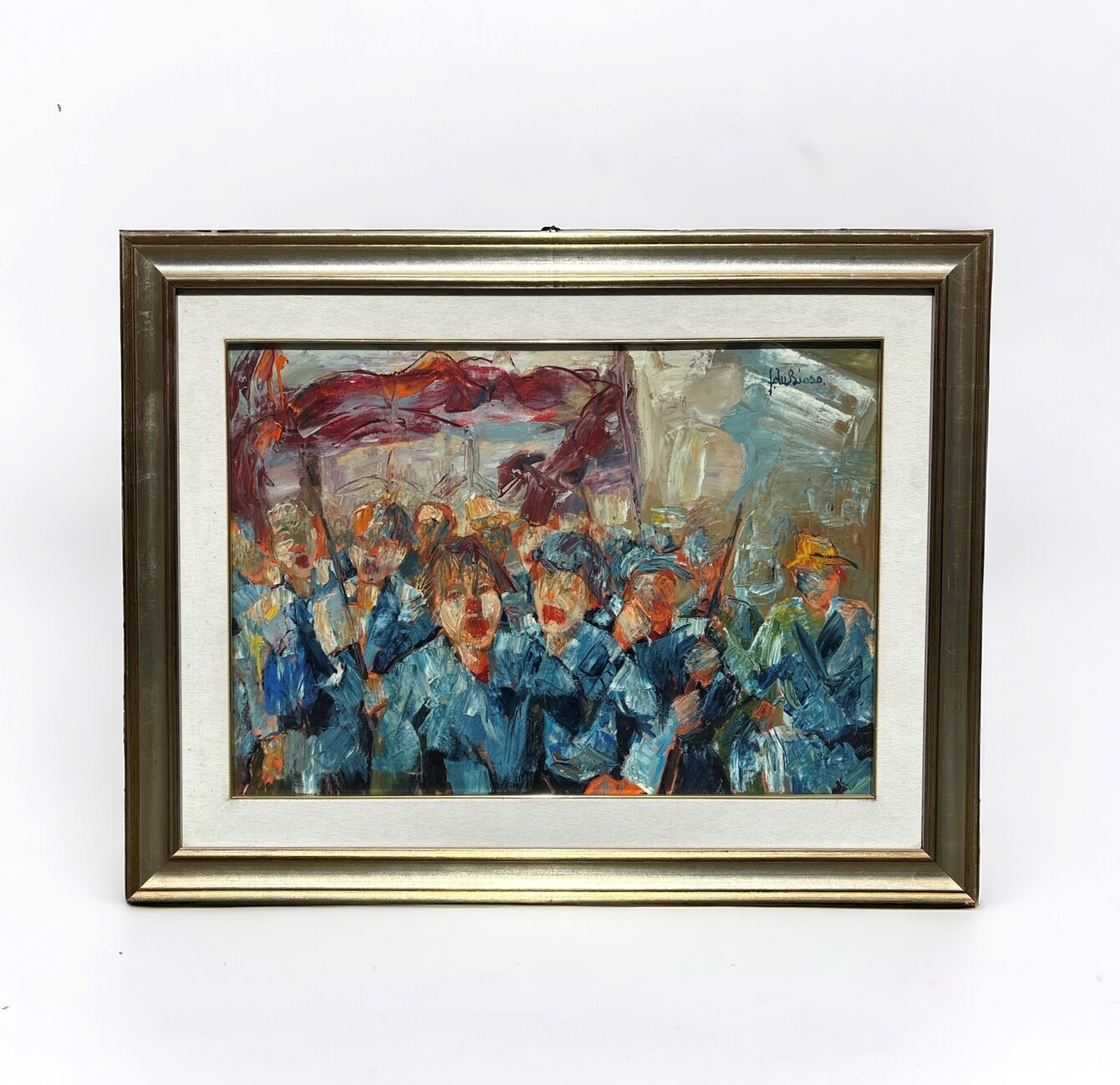 Lotto 139 | Manifestazione operaia olio su tela 49 x71 cm