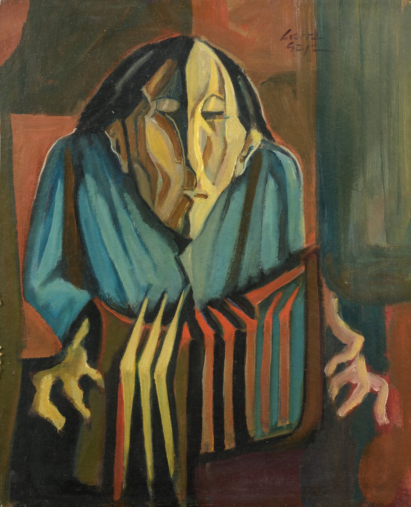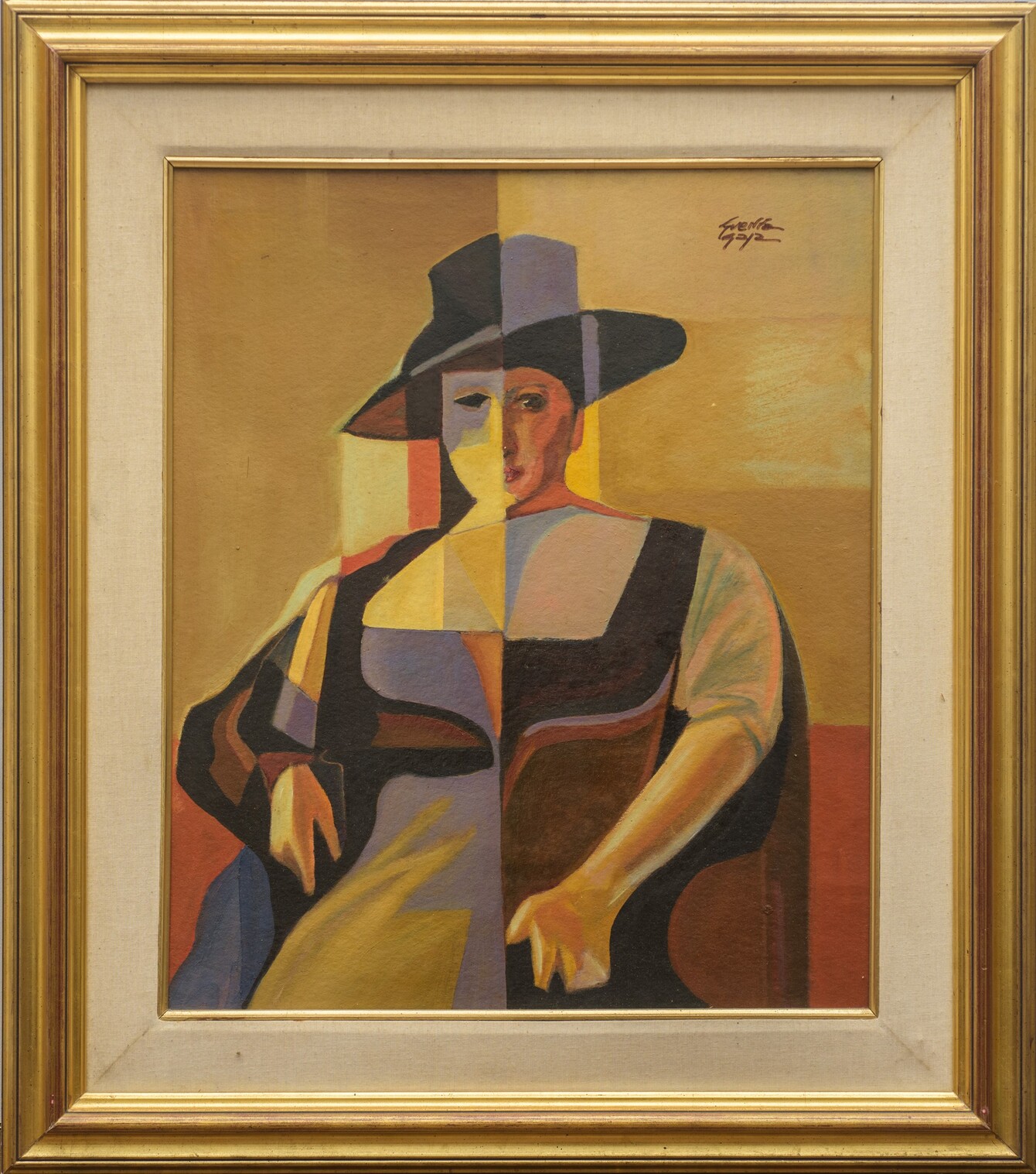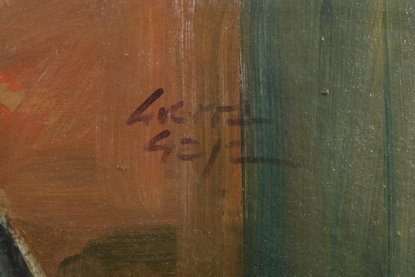 Jean Guerra Gaja (1931 - 1996) Due ritratti olio su compensato Dama 82 x 77 cm in cornice - 52 x 42 cm senza cornice