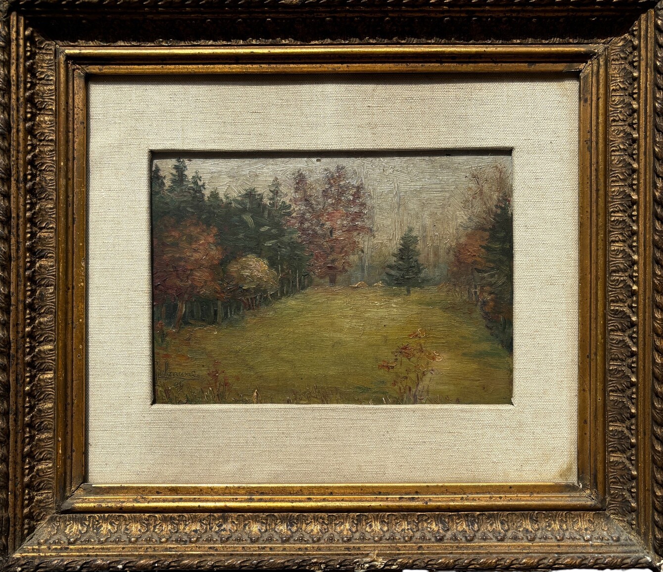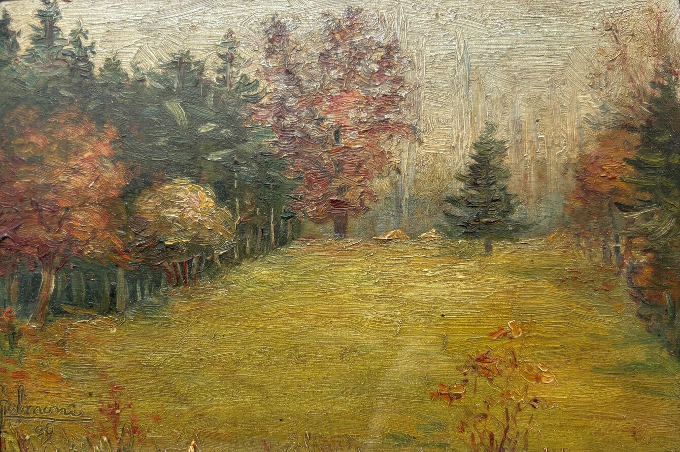 Charles Ielmoni (XIX - XX sec. ) Bois de Boulogne 1909 olio su tavoletta 16 x 22 cm