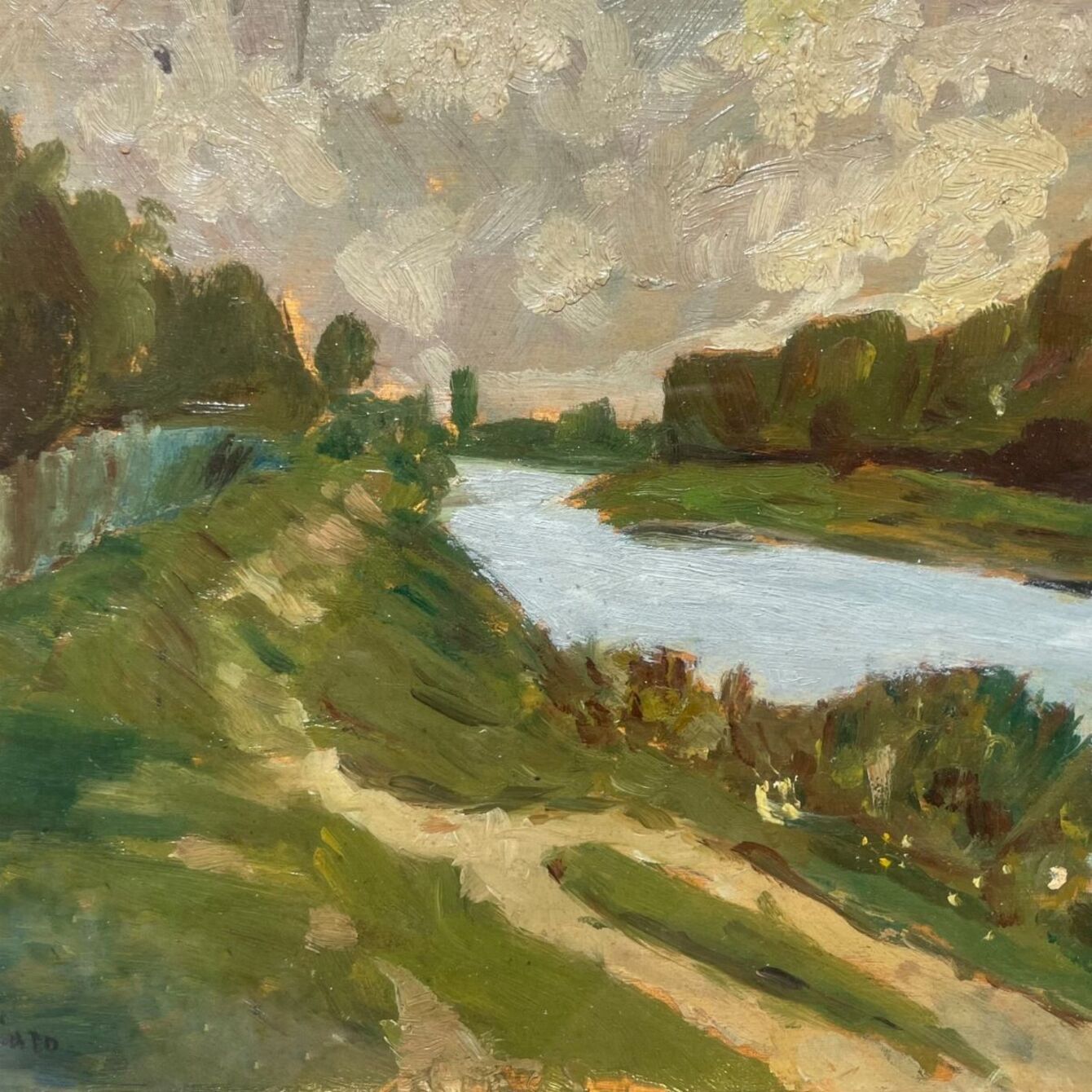 Guido Casciaro (1900 - 1963) Il fiume olio su tavoletta 18 x 25 cm