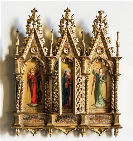 TRITTICO IN LEGNO INTAGLIATO E DORATO seconda metà del XIX secolo fronte...