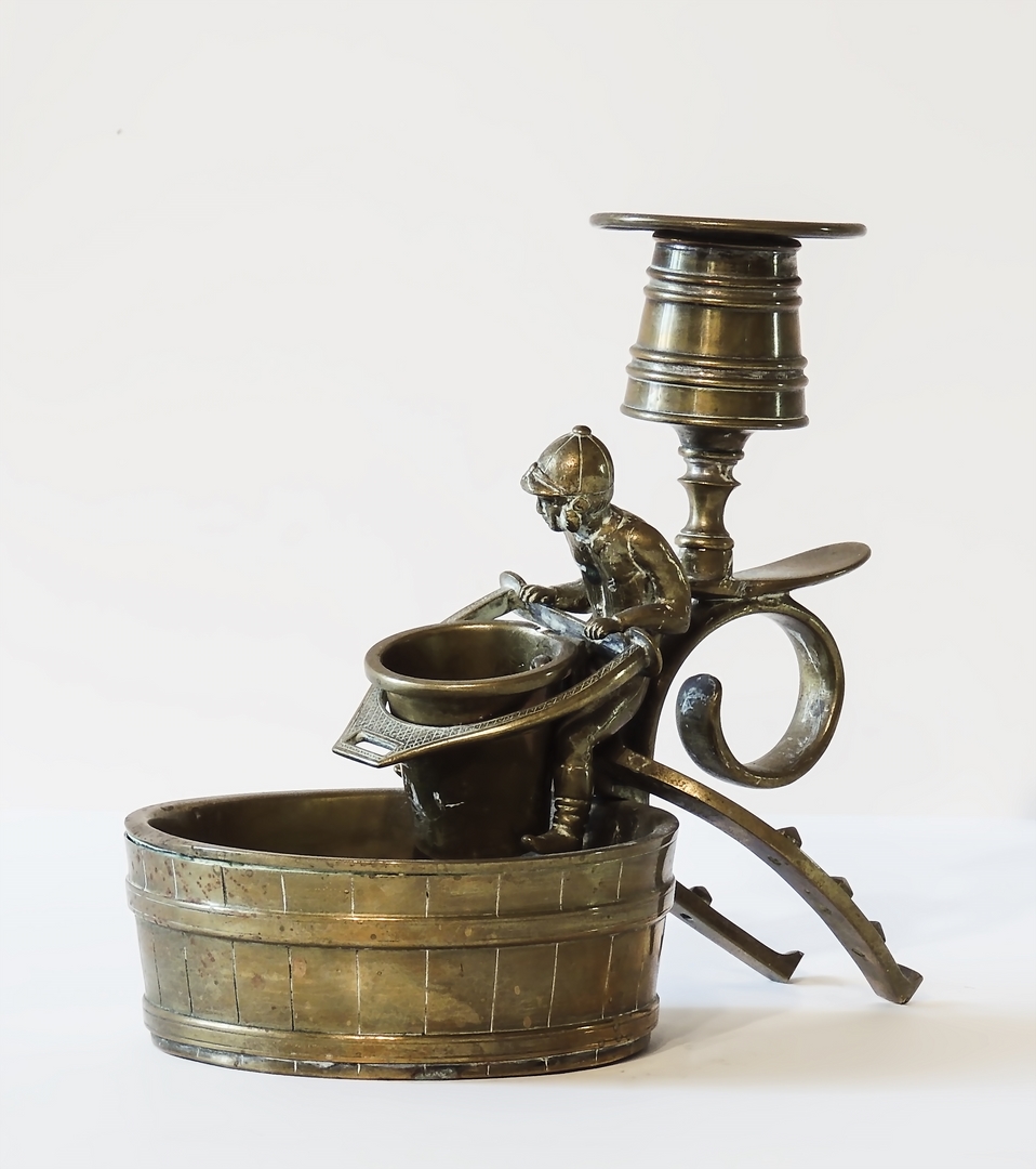 BUGIA IN OTTONE realizzata come un fantino, presa a ferro di cavallo
