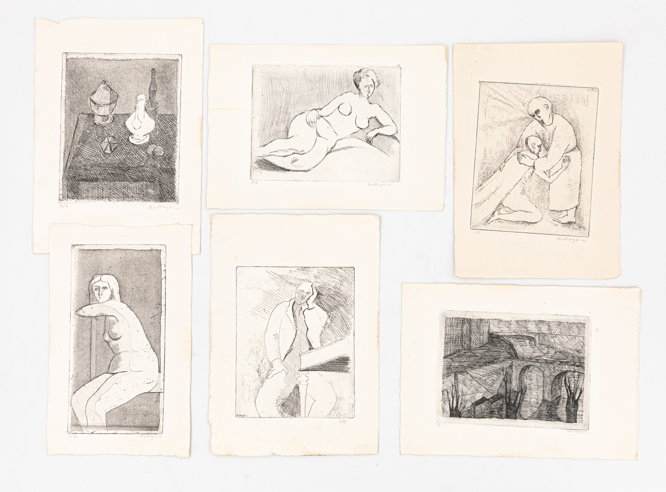 Lotto unico di 6 acqueforti, ciascuna recante firma e numerazione a matita al fronte