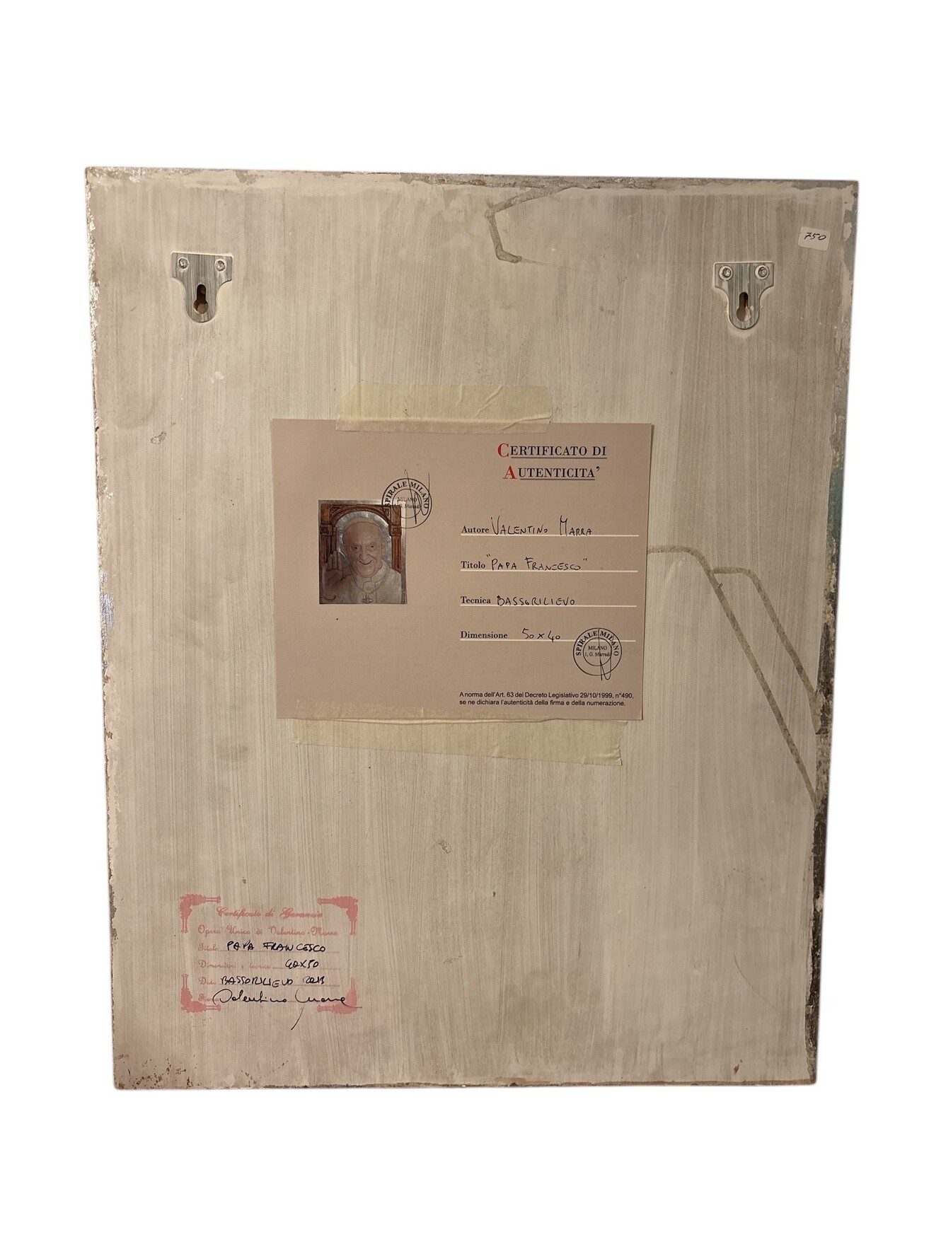 Valentino Marra (1956 - ) Papa Francesco bassorilievo su gesso 50 x 50 cm