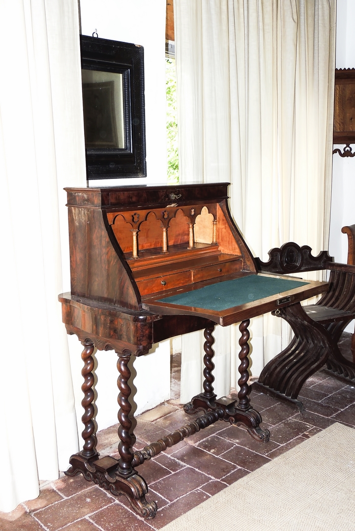 SCRITTOIO DA SIGNORA IMPIALLACCIATO IN PIUMA DI NOCE E PIUMA DI MOGANO metà...