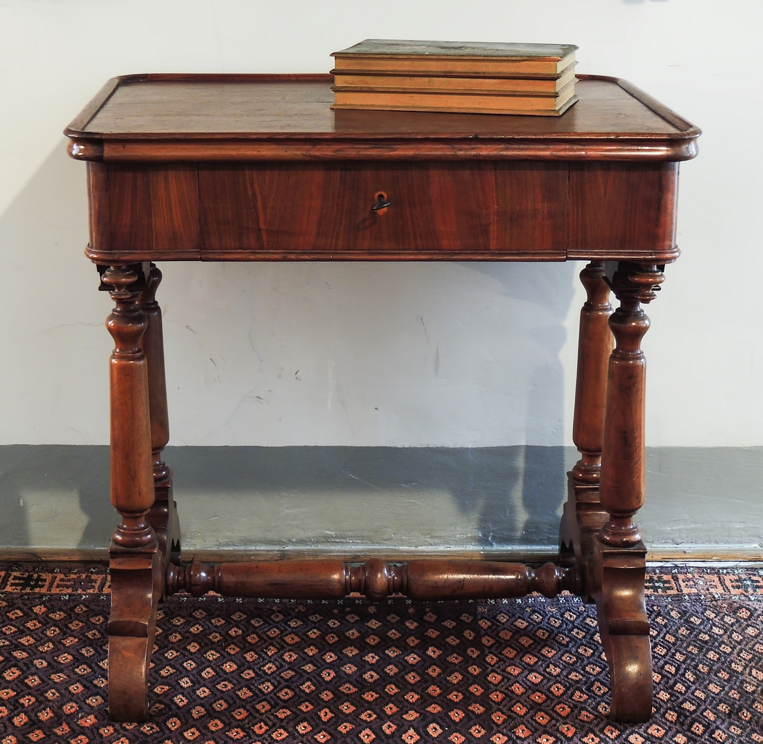 TAVOLINO DA LAVORO IMPIALLACCIATO IN NOCE seconda metà del XIX secolo un...