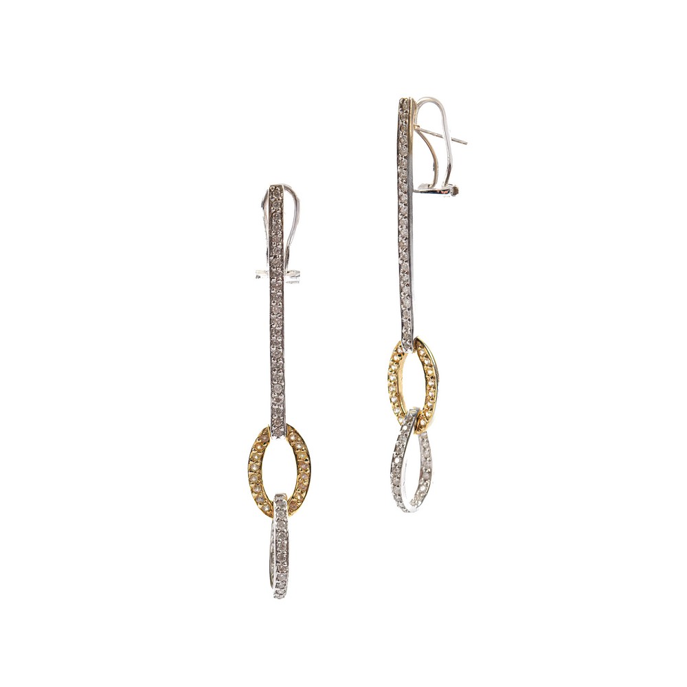 ORECCHINI in oro bianco e giallo 18 KT con diamanti taglio brillante ct. 1,00 peso di stima I COLOR VS2 (g. 6,80).