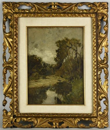 Eugenio Gignous PAESAGGIO olio su tavola, cm 31,9x23,1 firma