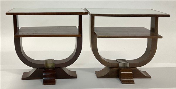 Coppia di mobiletti a doppio piano e sostegno arcuato, piano superiore a specchio. Francia, 1930ca. (cm 76,5x63x36) (difetti)