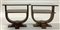 Coppia di mobiletti a doppio piano e sostegno arcuato, piano superiore a specch