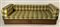Divano letto in legno con due cassetti alla base, struttura in legno massello, cuscini rivestiti in tessuto scozzese verde, giallo e beige. Prese dei cassetti in cuoio. (lievi difetti e piccole mancanze)