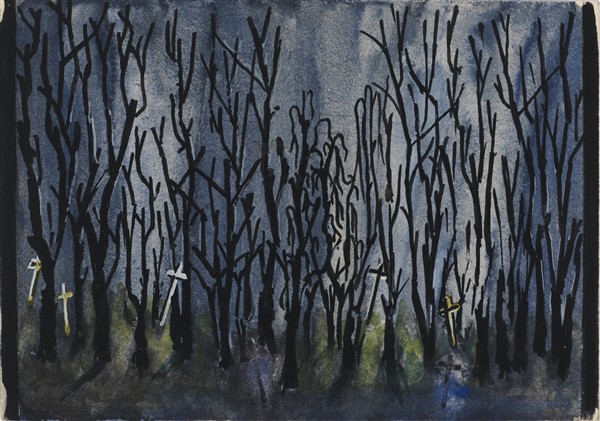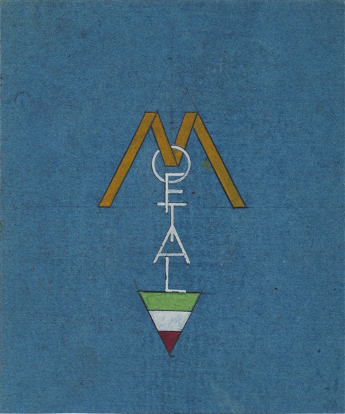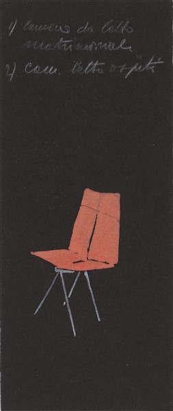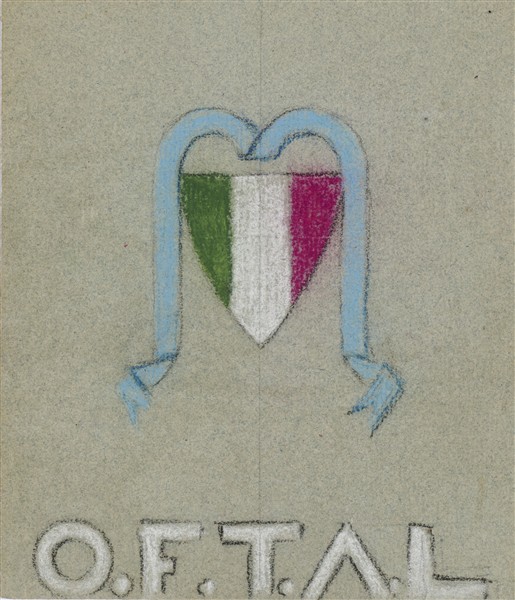 Cartella con due foto, un ritaglio di giornale e nove bozzetti, tra cui quelli
