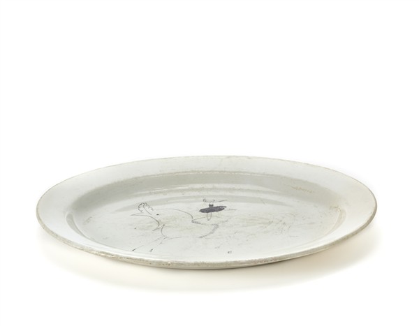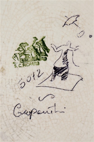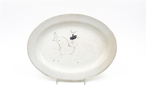 Società Ceramica Richard Vassoio con decoro monocromo a motivo circense. Milano,