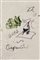 Vassoio con decoro monocromo a motivo circense. Milano, anni '20. Firma apocrifa Gio Ponti al verso. (cm 36x27) (difetti)