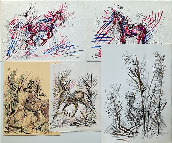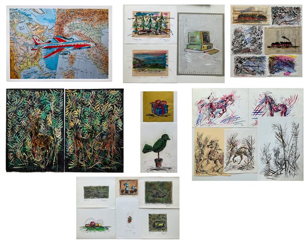 Lotto composto da numerose litografie e tecniche miste su carta di soggetto e misure diverse