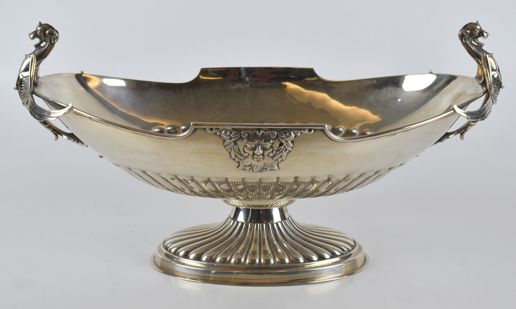 Centrotavola in argento con manici a guisa di figure alate gr 1054