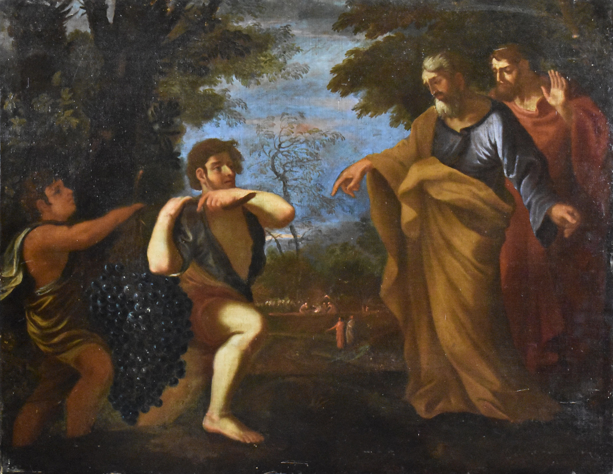 Caleb e Giosuè trasportano l'uva proveniente dalle terre di Canaan