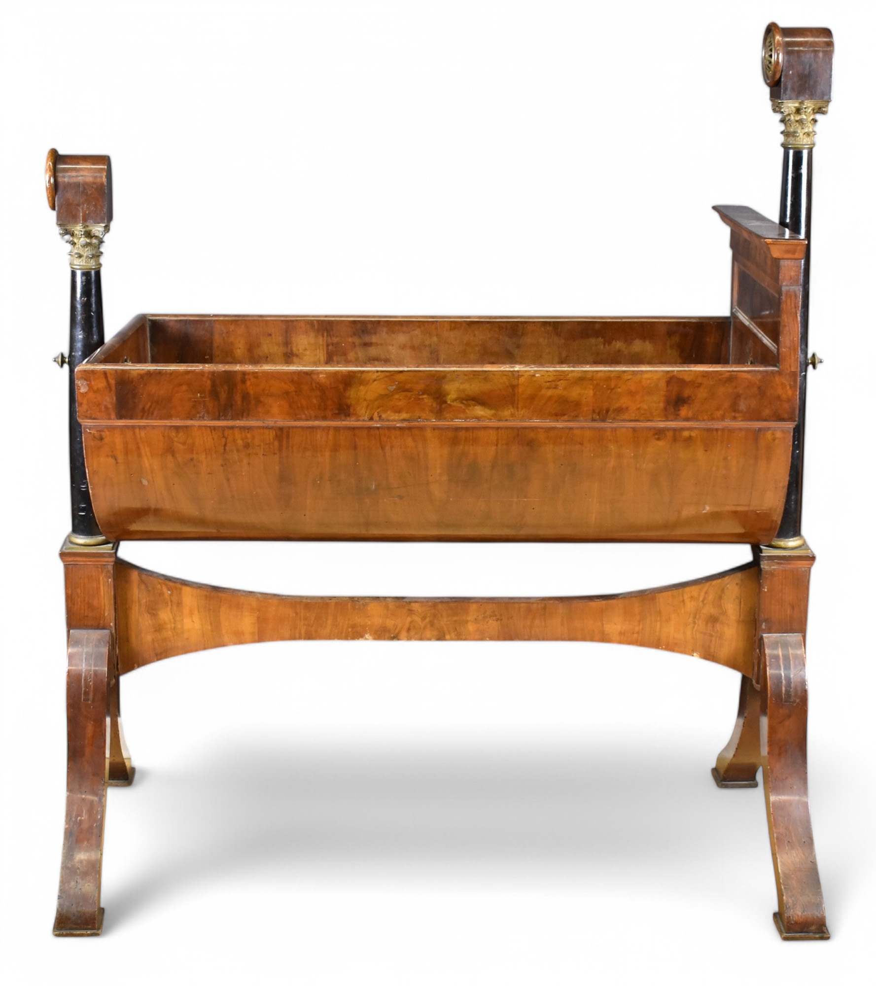 Culla in noce colonne ebanizzate guarniture in bronzo epoca impero inizio sec. XIX