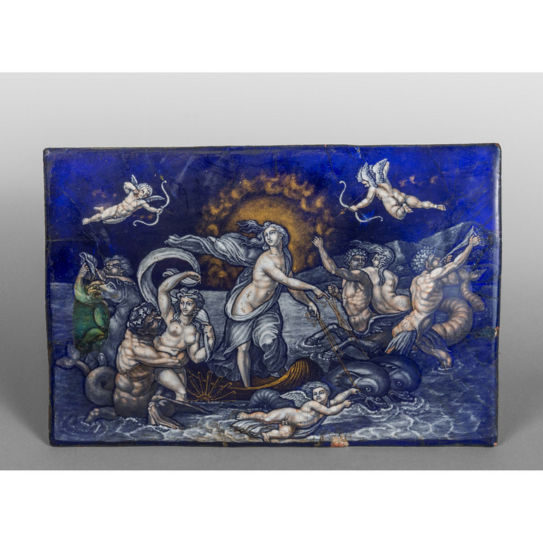 Placca in metallo smaltato con scena raffigurante il carro di Venere sec.XVIII/XIX