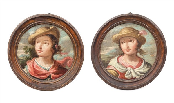 Ignoto Coppia di "Ritratti di fanciulli" olio su tela applicata su tavola (dia