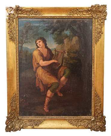 Artista neoclassico "Orfeo (?)" olio su tela (cm 67,5x50,5) in cornice (difett
