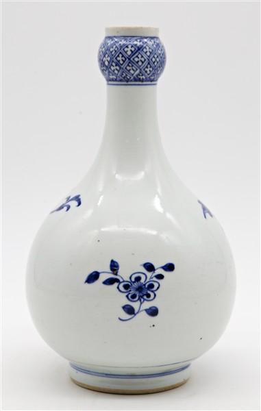 Vaso in porcellana bianca e blu con decoro floreale ed architettura Cina, dinas