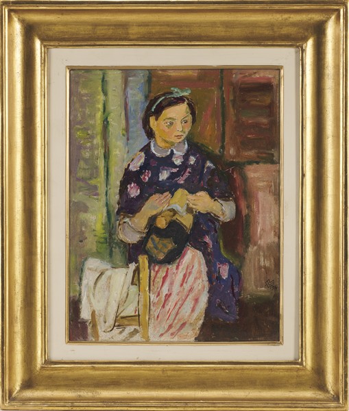 Mario Vellani Marchi "Tecla merlettaia. Burano" 1954 olio su cartone (cm 30x23,5