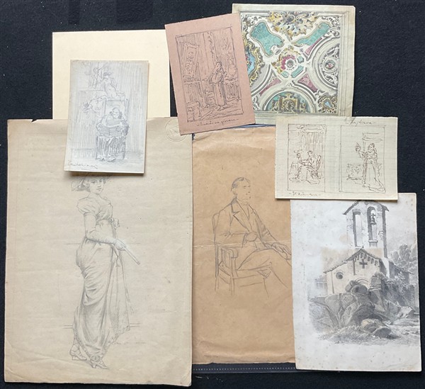 Lotto composto da numerosi disegni e incisioni di diversa epoca e decoro (difetti)