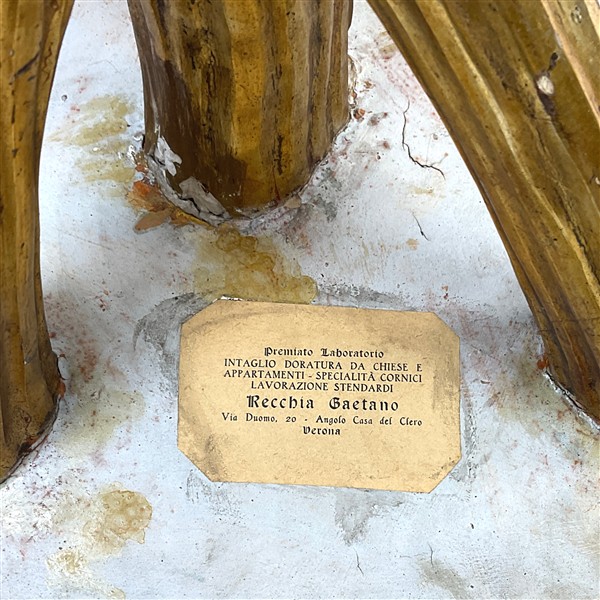 Gaetano Recchia, Verona, early 20th century. A carved laquered and gilded wood table. Paper label on the bottom of the table (cm 49x84x44) (defects and losses)