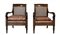Coppia di poltrone in mogano, braccioli mossi a volute, gambe anteriori tornite e posteriori a sciabola, schienale in paglia di Vienna (difetti e un cuscino mancante)