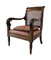 Coppia di poltrone in mogano, braccioli mossi a volute, gambe anteriori tornite