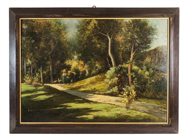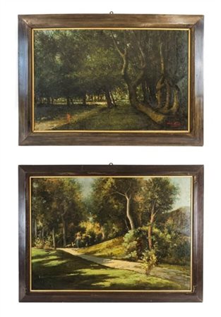 Lotto composto da due paesaggi olio su compensato (cm 80x118)