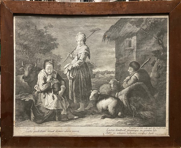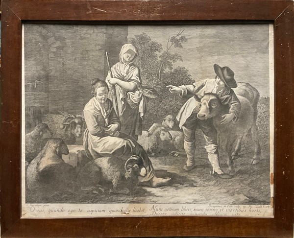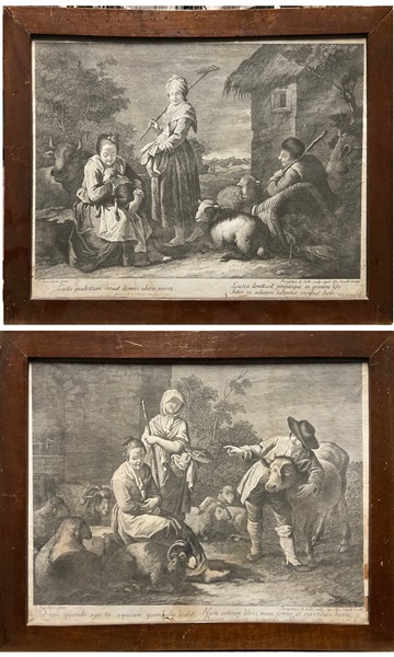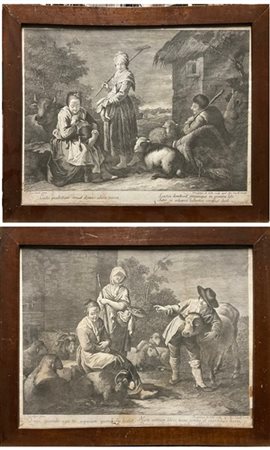 Nicolò Cavalli (1730-1832) da G. Giacoboni. Coppia di incisioni all'acquaforte su carta raffiguranti pastori con armenti (cm 32x41,5) in cornice (difetti)