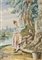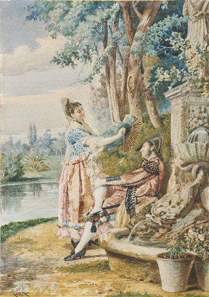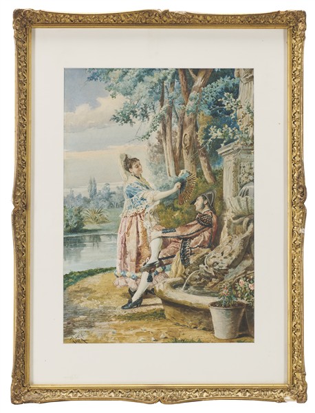 Belisario Gioja "Corteggiamento" Roma acquerello su carta (cm 49x33,5) firmato e