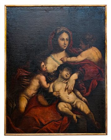Scuola italiana del secolo XVIII "La carità" olio su tela (cm 135x105) in corn