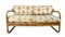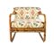 Fornitura da salotto in giunco e scortecciato con cuscini rivestiti in tessuto decorato a fiori e greche. Italia, anni '70. (lievi difetti)