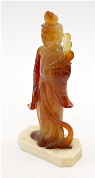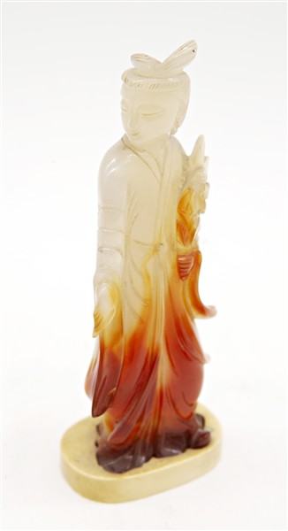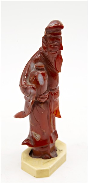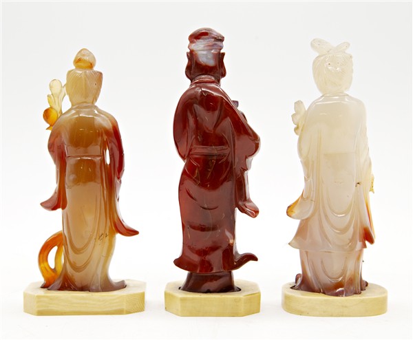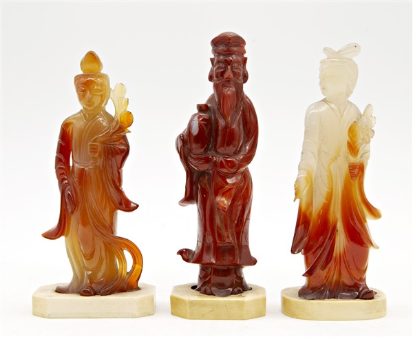 Lotto composto da due figure femminili ed una maschile in corniola e agata Cina