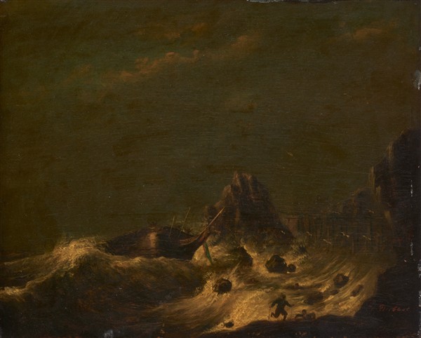 Alla maniera di Hendrick Dubbels "Naufragio" olio su tavola (cm 23x28) iscritt