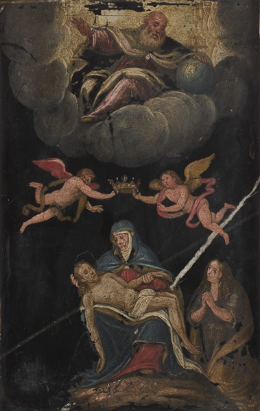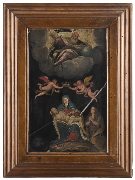 Lotto 938 | Scuola della fine del secolo XVII "La pietà" olio su lavagna (cm 29x19) in cor