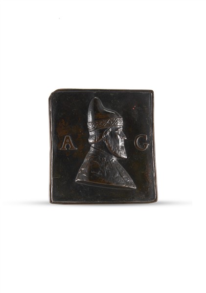 (attr.) " Andrea Gritti doge" bronze plaque with high-relief of the Venetian doge, 1523 approximately (cm 13,5x12,5) (slight defects)