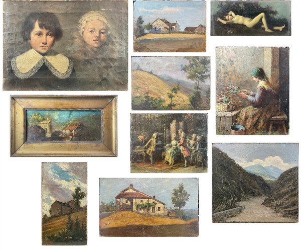 Lotto composto da dieci dipinti ad olio, di diversi autori tra cui Giuseppe e N