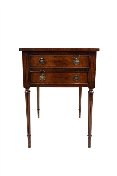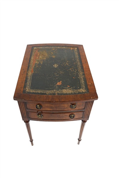 Lotto composto da un comodino a due cassetti con gambe scanalate e piano con in