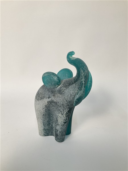 Figura di elefante in vetro verde tipo scavo. Murano. (h cm 21) (difetti)