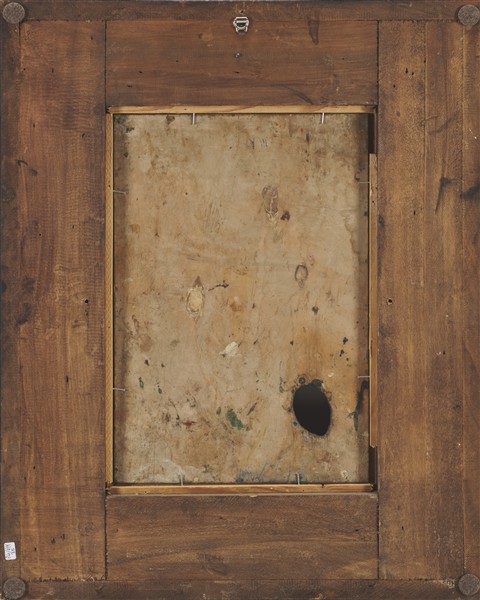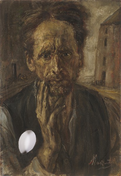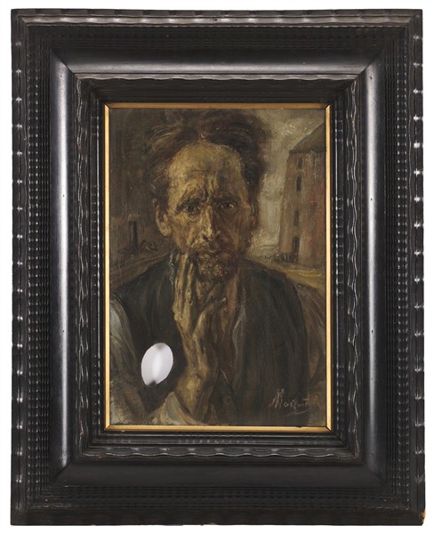 Natale Morzenti "Autoritratto su tavolozza" olio su tavola (cm 36x25) firmato i