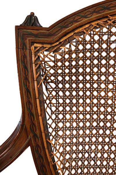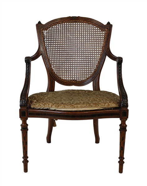 Poltrona in mogano intagliato e dipinto con seduta e schienale a scudo in paglia di Vienna. Inghilterra, secolo XIX (difetti e rotture)