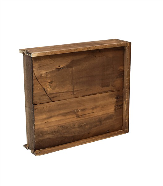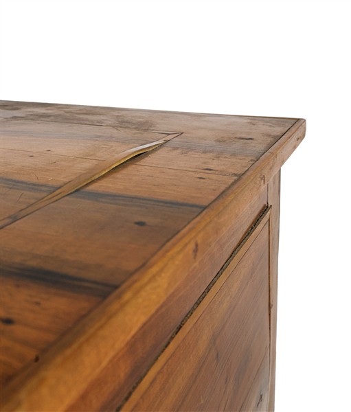 Scrittoio da centro lastronato e filettato in legni vari, fronte a cinque diver