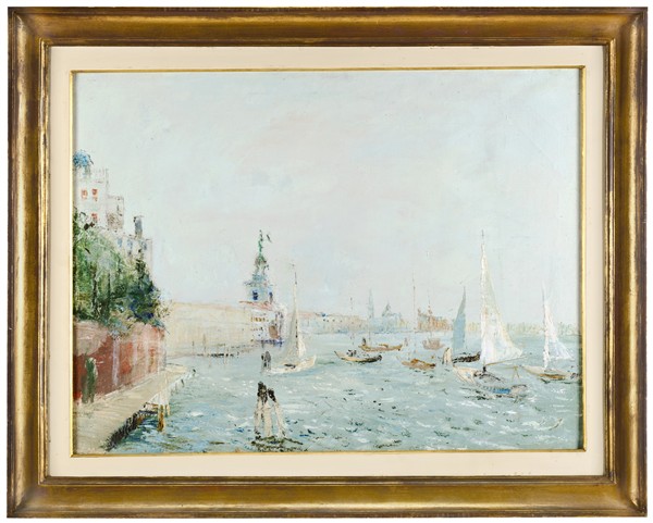 Adriano Spilimbergo "Punta della Dogana" olio su tela (cm 60x80) in cornice (di