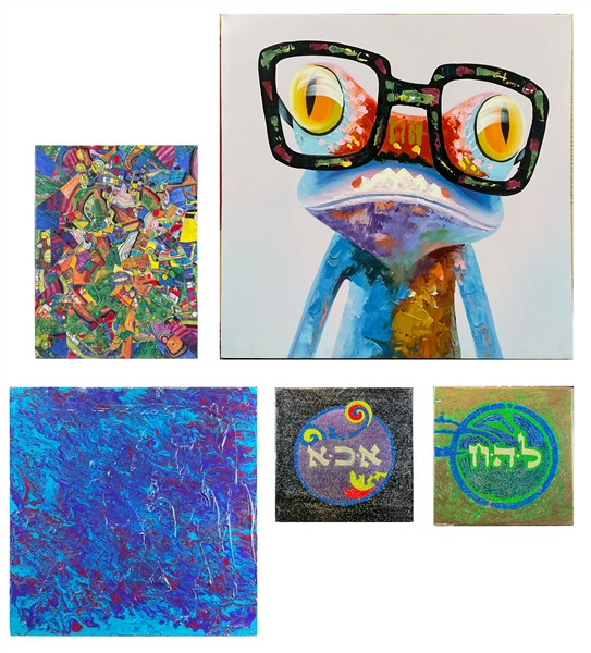 Lotto composto da cinque opere a tecnica mista su supporti differenti di autori e misure diverse (misura max cm 80x80) alcune opere firmate al retro