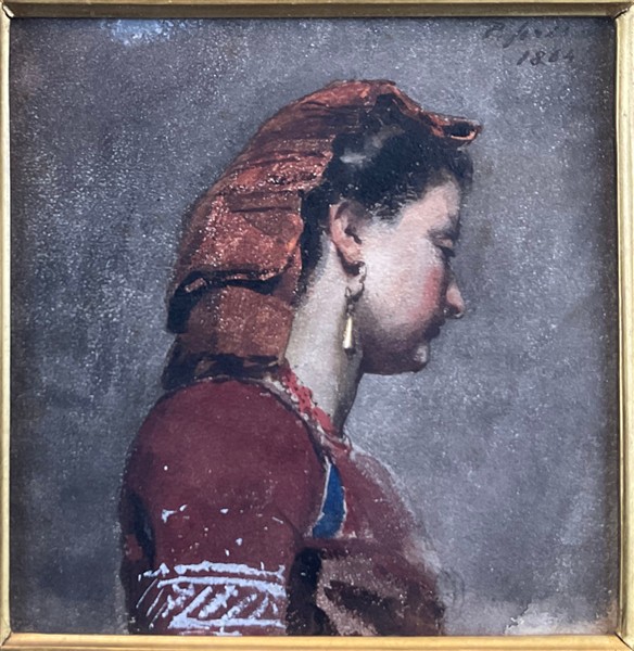 Pio Joris "Testa di fanciulla" 1864 tecnica mista su carta (cm 14x14) firmato e